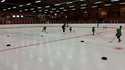 Detta "träningstillfälle" var till för att barnen skulle få bekanta sig med isen och sin utrustning, då det var ett tag sedan de flesta var på is.