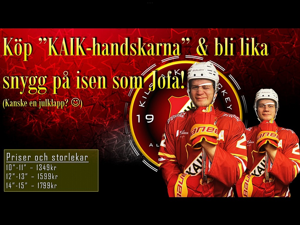 Nu finns vår egna klubbbhandske i lager. Det är genom våra samarbetspartners Bauer och Hockeystore vi kan erbjuda denna handske. Handskarna finns i i alla storlekar men vi reserverar oss för slutförsäljning i vissa storlekar. Storlekar och priser nedan: