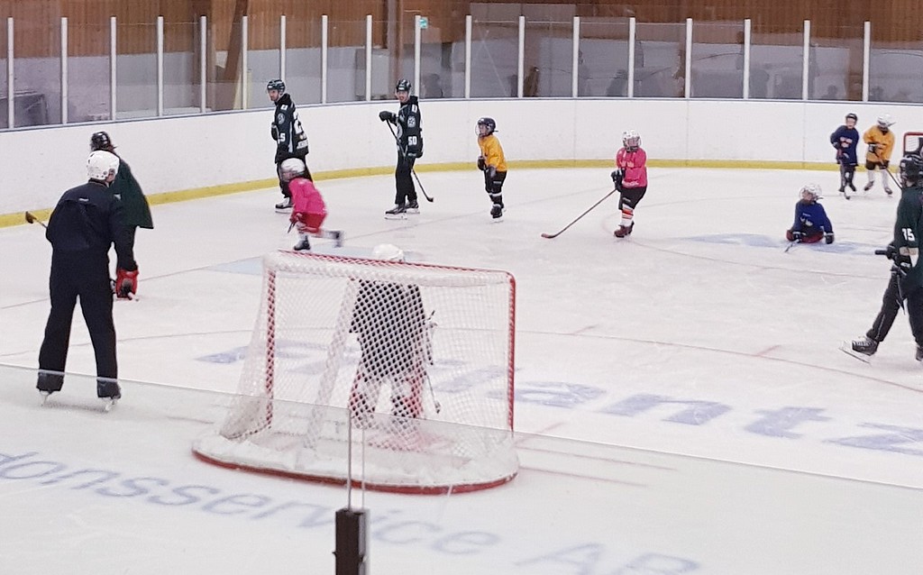 Vi har flera låne/hyr utrustningar i ishallen, om det är någon som har extra skydd/utrustning hemma så ta gärna med till träningstillfället. Det kompisen behöver ha med sig är skridskor, hjälm och halsskydd.